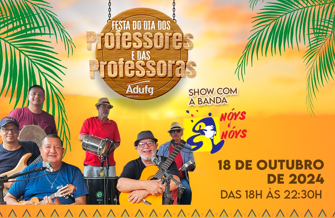 O Adufg-Sindicato vem a público corrigir uma divulgação equivocada feita pela entidade sobre o horário da Festa do(a) Professor(a) de Goiânia em algumas de suas peças publicitárias. Nos cartazes impressos e distribuídos nas unidades acadêmicas, é dito que a celebração em homenagem aos docentes teria início às 22h30, entretanto o evento começa às 18h.