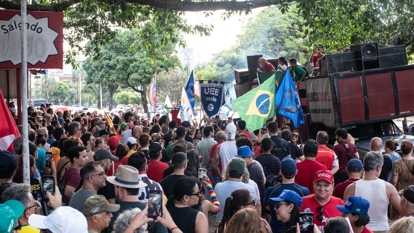 A manifestação integra o calendário nacional de lutas contra a Proposta de Emenda à Constituição (PEC) 38/2025. Em Goiânia, o ato foi convocado pelo Fórum Goiano em Defesa dos Direitos, da Democracia e da Soberania.