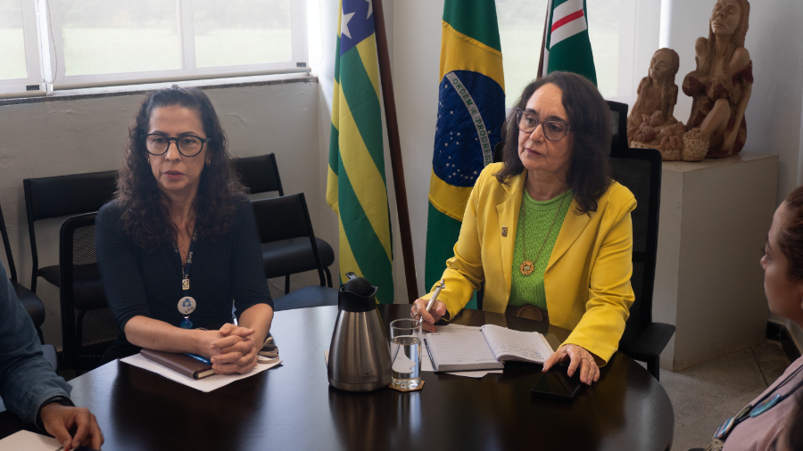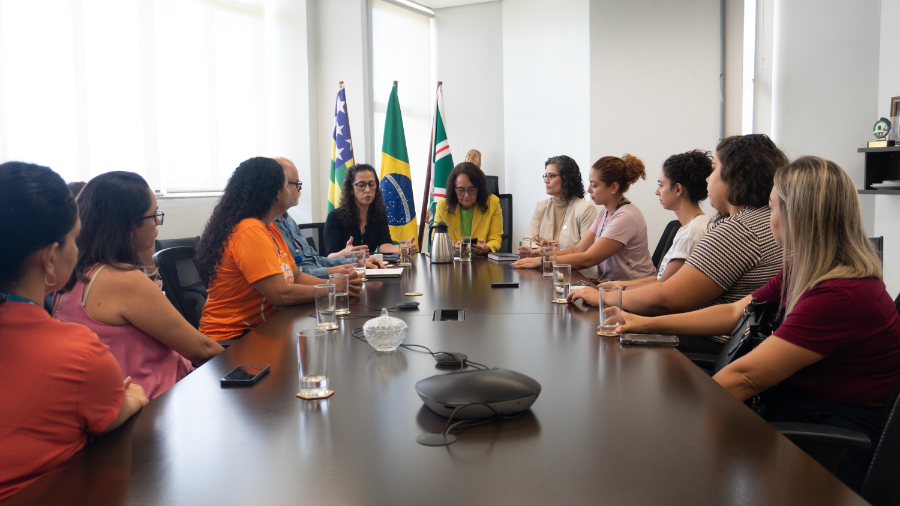 O documento foi apresentado durante reunião com a reitora Sandramara Matias, a vice-reitora Camila Caixeta e a pró-reitora de Gestão de Pessoas, Maria Tereza de Godoy.