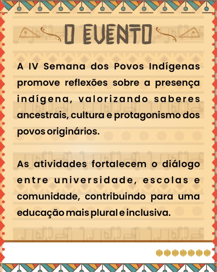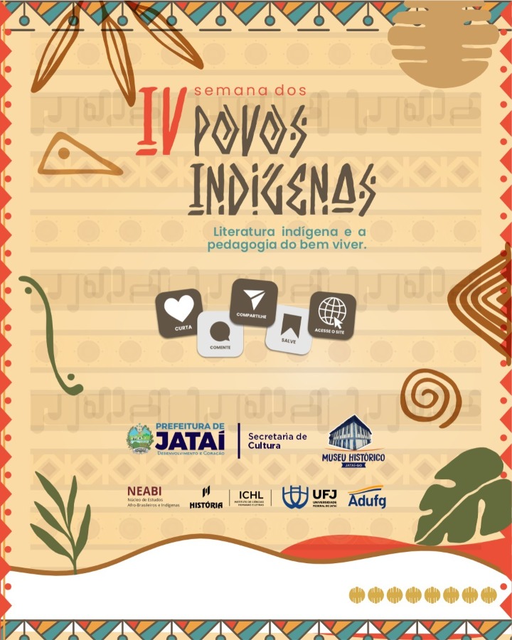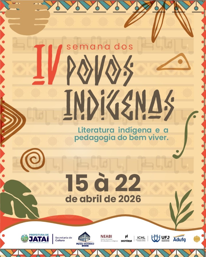 Em celebração ao Dia dos Povos Indígenas, a Universidade Federal de Jataí (UFJ) promove, entre os dias 15 e 22 de abril, a quarta edição da Semana dos Povos Indígenas, com programação voltada ao tema “Literatura indígena e pedagogia do bem viver”. O evento, realizado com o apoio do Adufg-Sindicato, terá reflexões sobre a presença indígena, valorizando saberes ancestrais, cultura e protagonismo dos povos originários.